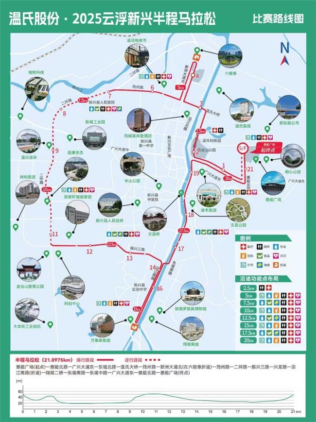 赛事以惠能广场为起点,沿途串联金台山智慧公园、六祖像、文昌桥等代表性禅意景点,同步途经温氏集团、翔顺集团等本土重点企业,让跑友在奔跑中沉浸式领略“禅意山水、生态田园”的风光画卷,直观感受城市发展的强劲脉动。