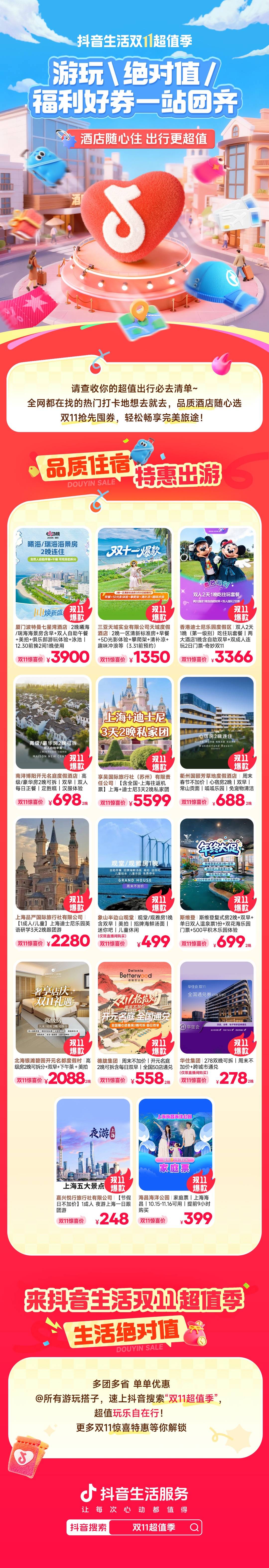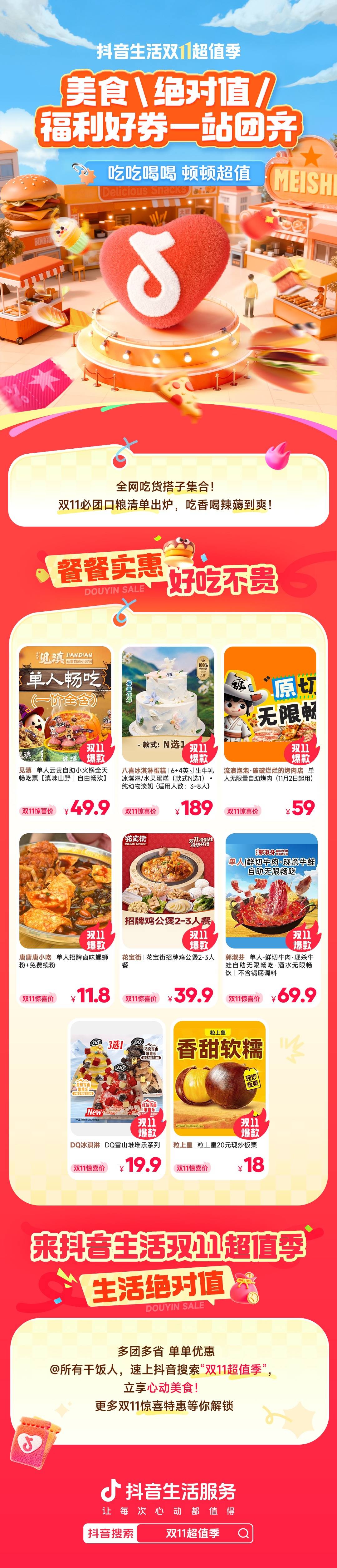 10月29日-11月11日,「抖音生活双11超值季」干饭、旅行、居家全品类好物一站配齐,每款都是精挑细选的爆品!更叠加千万级好券和专属优惠,不用花时间比价,照着清单随心挑,想要的福利超值到手!