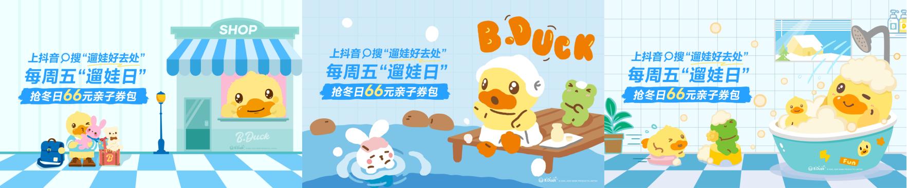 同时,抖音生活服务与经典高热IP B.DUCK小黄鸭联动,当小黄鸭成为「周五遛娃大使」,直接萌化你的心,来「遛娃好去处」,既能和小黄鸭一起享受买买买的亲子快乐时光,也能体验到亲子洗浴的治愈温暖,更有小黄鸭陪你在温馨酒店安稳入睡。