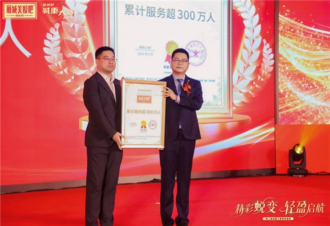 在现场嘉宾与媒体的共同见证下,丽减美瘦吧正式获授 “科学健康减重塑形行业领导品牌”称号,并获颁 “累计服务超300万人”市场地位声明。这两项荣誉,标志着丽减美瘦吧在专业服务、规模影响与行业口碑上的综合实力,进一步巩固了品牌的市场领先地位。